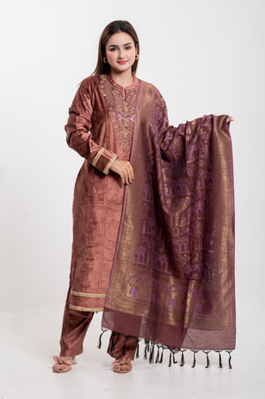 Color: Rust Brown Kurta & Bottom with Maroon Jacquard Dupatta