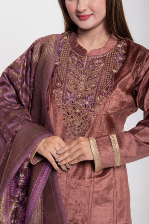Elegant Rust Brown Embroidered Kurta Set with Jacquard Dupatta