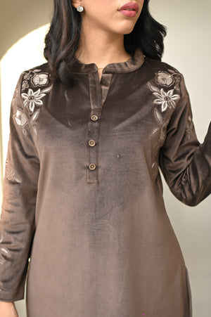 Wrap yourself in earthy warmth with our brown 2-piece kurta set, a tribute to nature’s quiet elegance. Crafted in a breathable, winter-friendly fabric, the straight-cut kurta and coordinated bottoms bring comfort, culture, and simplicity together in perfect harmony.