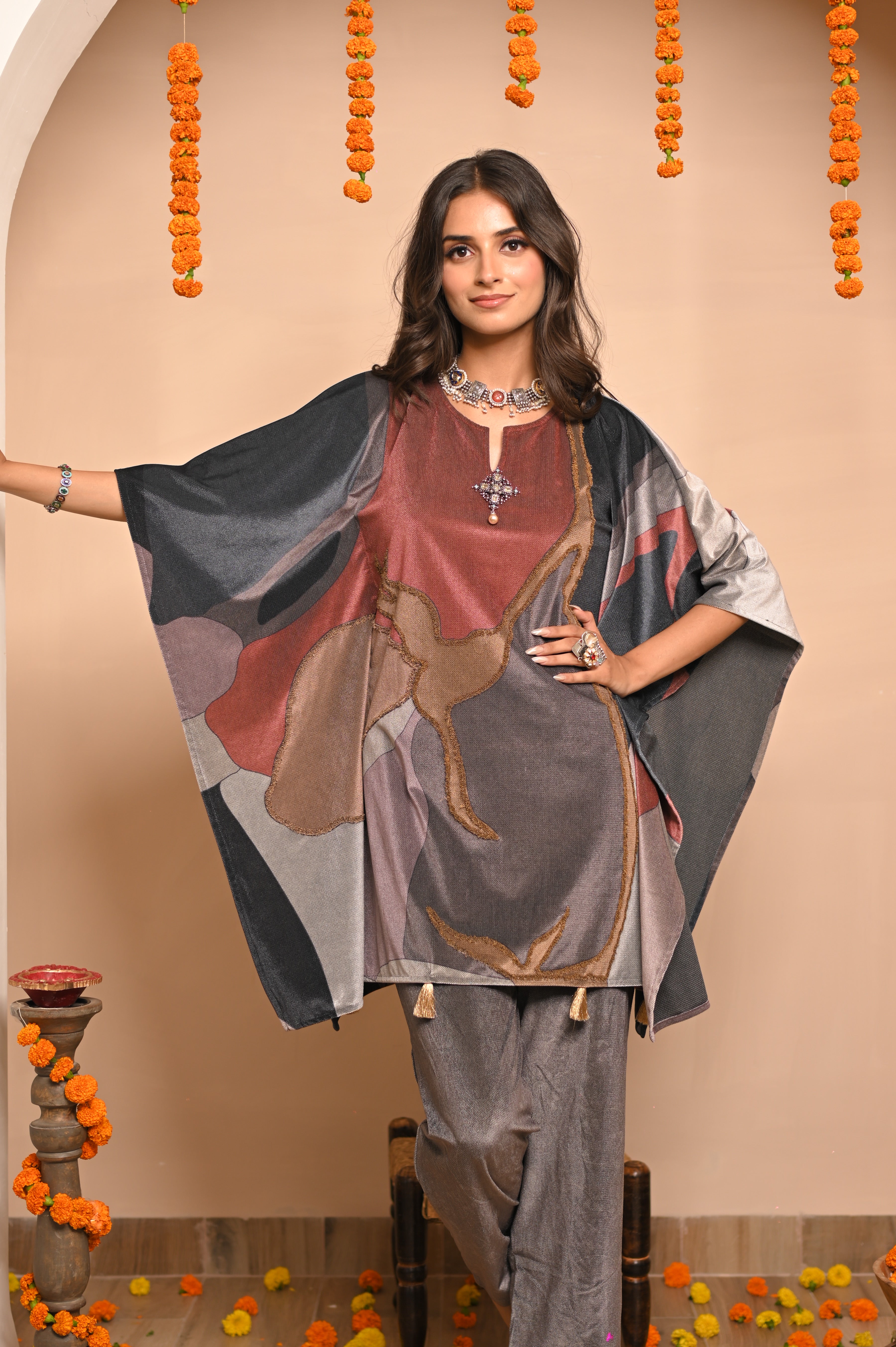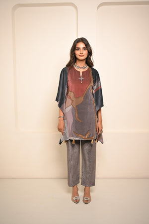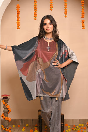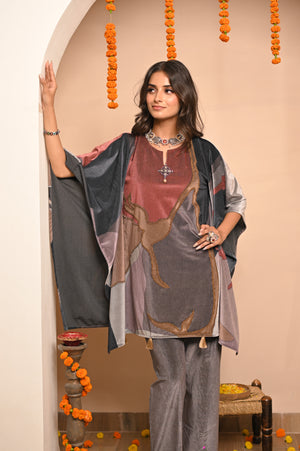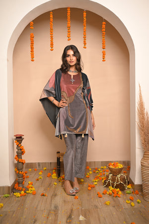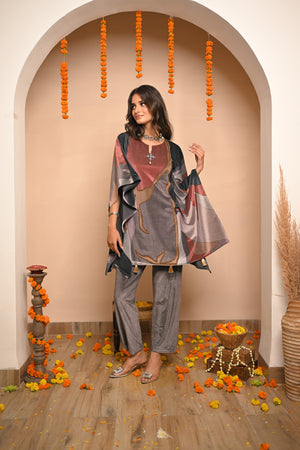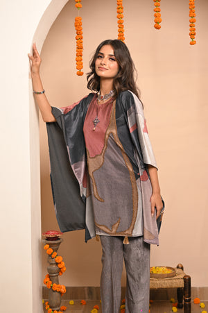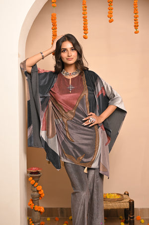 perfect balance of warmth and elegance — the Rust Grey coord set blends earthy tones with a subtle grey undertone, making it a timeless choice for cozy winter evenings and festive gatherings.